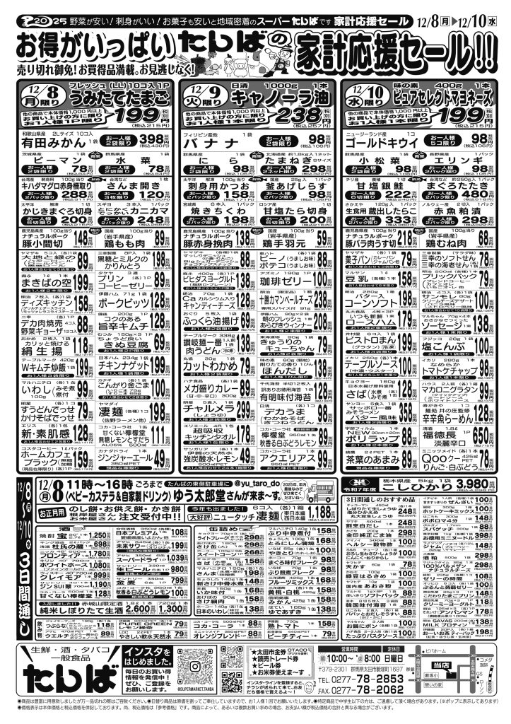 日替わり得市 12/8~12/10